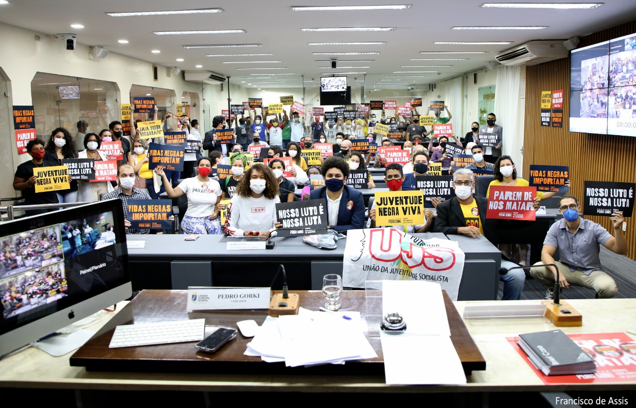 Os dados preocupantes que apontam para o extermínio da população jovem e negra de Natal nortearam a audiência pública realizada nesta terça-feira (23) na Câmara Municipal. O debate foi uma proposição do mandato do vereador Pedro Gorki (PCdoB) e da Frente Parlamentar da Juventude da CMN e contou com a participação de diversos movimentos sociais, movimentos que defendem os direitos da população negra, Ministério Público Estadual (MPRN), UFRN, gestores das secretarias Municipal da Igualdade Racial e da Estadual da Juventude, conselheiros tutelares, professores e estudantes.