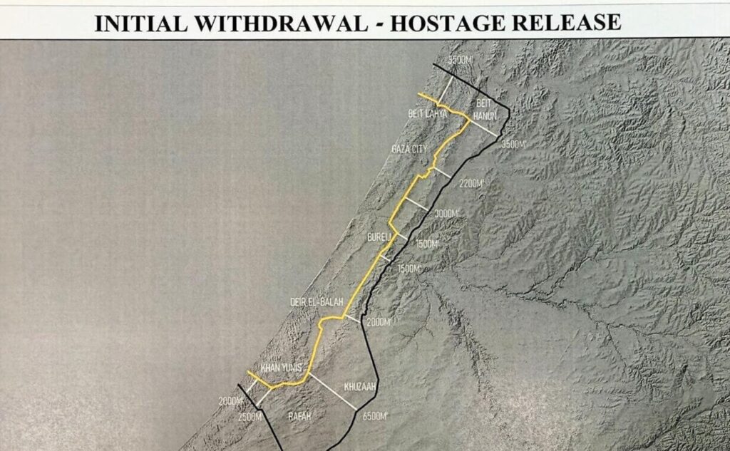 O acordo prevê, portanto, que as FDI mantenham presença no sul de Gaza, nas cidades de Rafah e Khan Younis, além de grandes áreas do norte da Faixa e de zonas de segurança em outras partes do território.