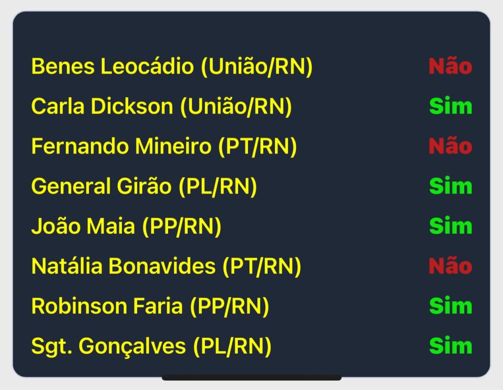 VEJA COMO FICOU A VOTAÇÃO DOS PARLAMENTARES DO RN: