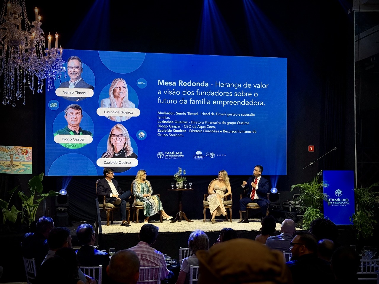 A plenária foi um verdadeiro caldeirão de insights e experiências. Os painéis de alto nível foram um dos pontos altos do Summit. O primeiro, intitulado “Herança de Valor: A Visão dos Fundadores sobre o Futuro da Família Empreendedora”, reuniu ícones como Zauleide Queiroz (Sterbom), Diogo Gaspar (AquaCoco) e Lucineide Queiroz (Supermercados Queiroz). Sob a mediação perspicaz de Semio Timeni, os fundadores compartilharam as bases sólidas e os valores que construíram suas marcas, oferecendo lições inestimáveis sobre resiliência e visão de futuro.