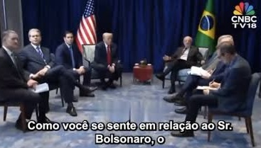 Em seguida, uma jornalista pergunta se Bolsonaro estaria na pauta, ao que Trump respondeu: “Não é da sua conta”.