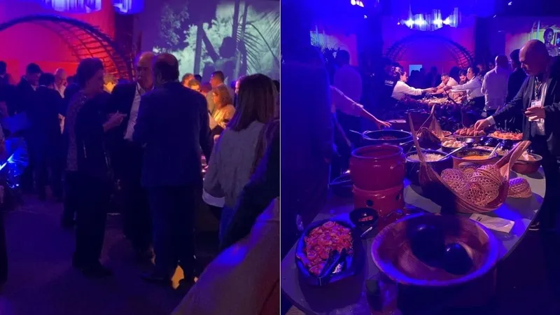 O cardápio, preparado pelo chef paraense Saulo Jennings, incluía pratos com peixes típicos da Amazônia — o mais requisitado foi o filhote — e uma estação com oito opções de drinks.