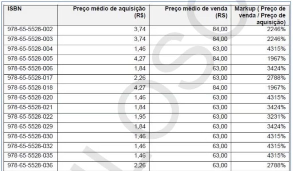 Os investigadores encontraram um padrão nos contratos: a empresa comprou livros por R$ 1 a R$ 5 e revendeu para as prefeituras por até R$ 80 cada.