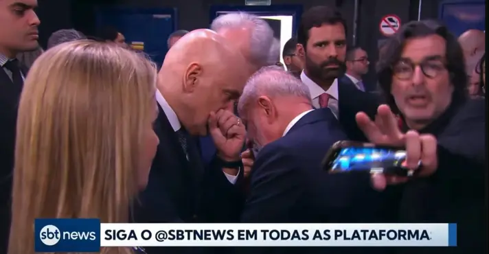 O fotógrafo do presidente Luiz Inácio Lula da Silva (PT), Ricardo Stuckert, impediu uma equipe do SBT de gravar uma conversa reservada entre Lula, o ministro do STF Alexandre de Moraes e o ministro da Justiça, Ricardo Lewandowski. A esposa de Moraes, a advogada Viviane Barci também aparece na imagem.O episódio ocorreu durante o lançamento do canal SBT News, evento transmitido ao vivo pelo YouTube nesta sexta-feira (12).