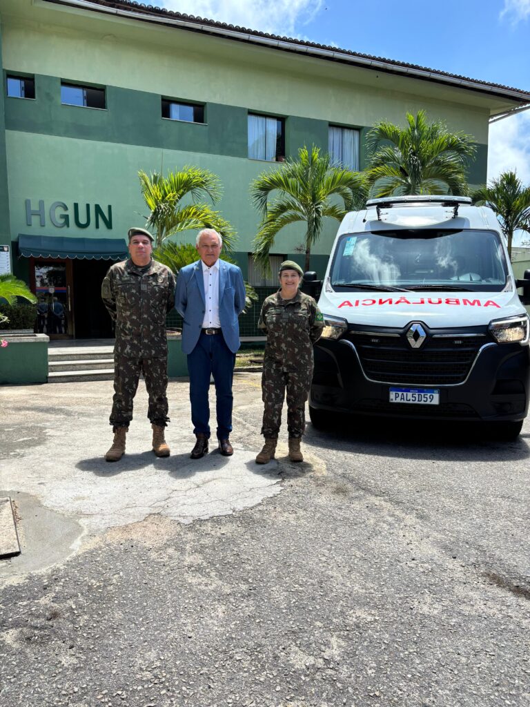 Também estiveram presentes na solenidade de entrega o Coronel Vieira, Subdiretor do HGUN; o Tenente-Coronel Saulo, Fiscal Administrativo do HGUN; o Coronel PTTC Erlan, Assessor de Relações Institucionais da 7ª Brigada; o Tenente-Coronel PTTC Moura, Assessor Parlamentar da 7ª Brigada; e a Capitão Isaiane, Chefe da Assessoria de Gestão do HGUN, demonstrando a integração institucional em torno desse importante avanço.