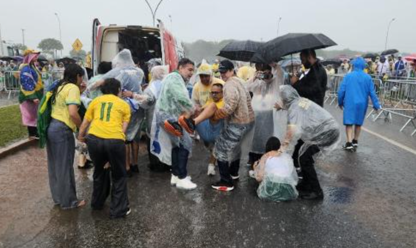 A queda de um raio provocou pânico e deixou dezenas de pessoas feridas durante o ato convocado pelo deputado Nikolas Ferreira (PL-MG), em Brasília, neste domingo. Testemunhas relataram que várias pessoas caíram após sofrerem choques elétricos. Chovia forte no momento do incidente na praça do Cruzeiro.
